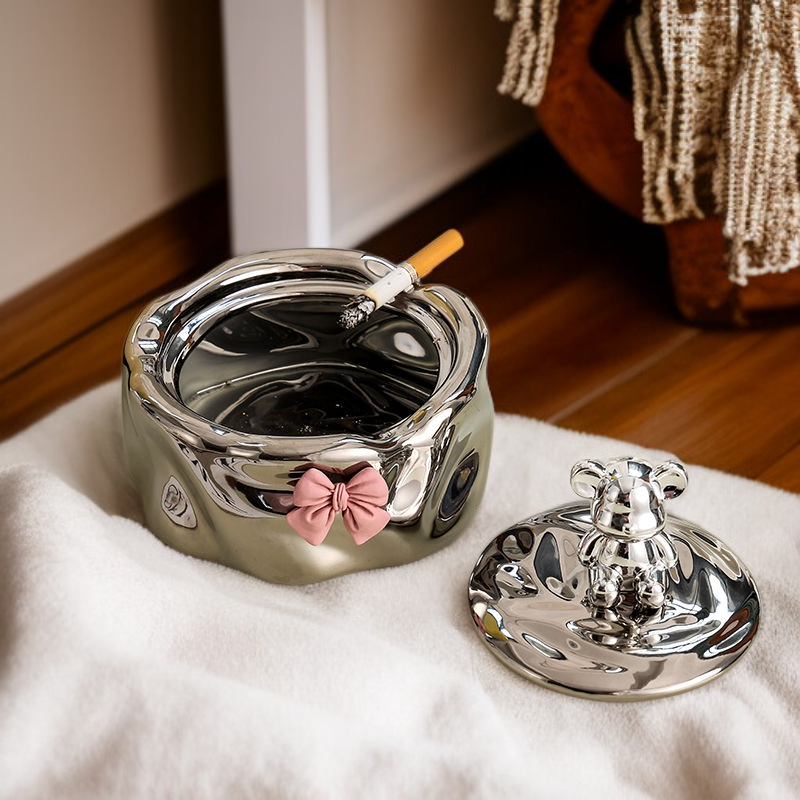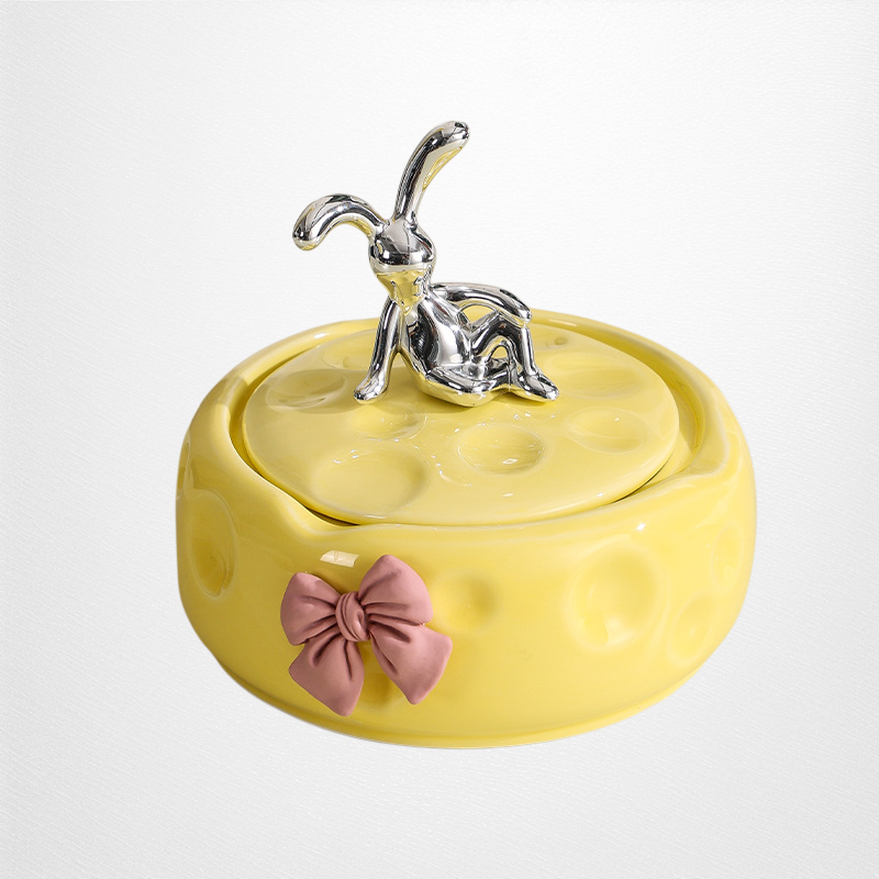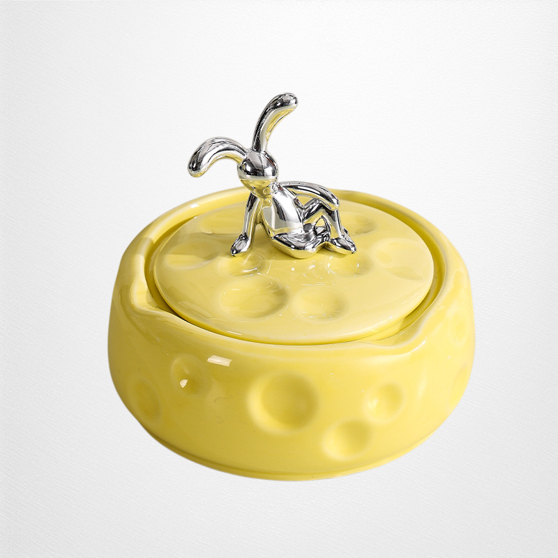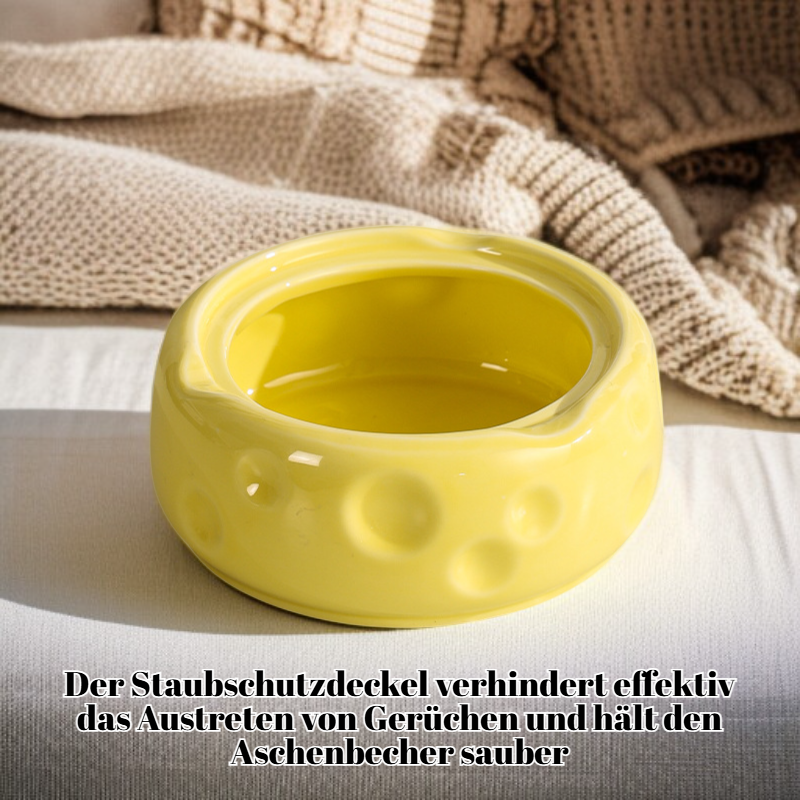 Keramik-Aschenbecher mit Deckel, Käse-Design, staubdicht, für Wohnzimmer, hochwertiges und elegantes Dekor