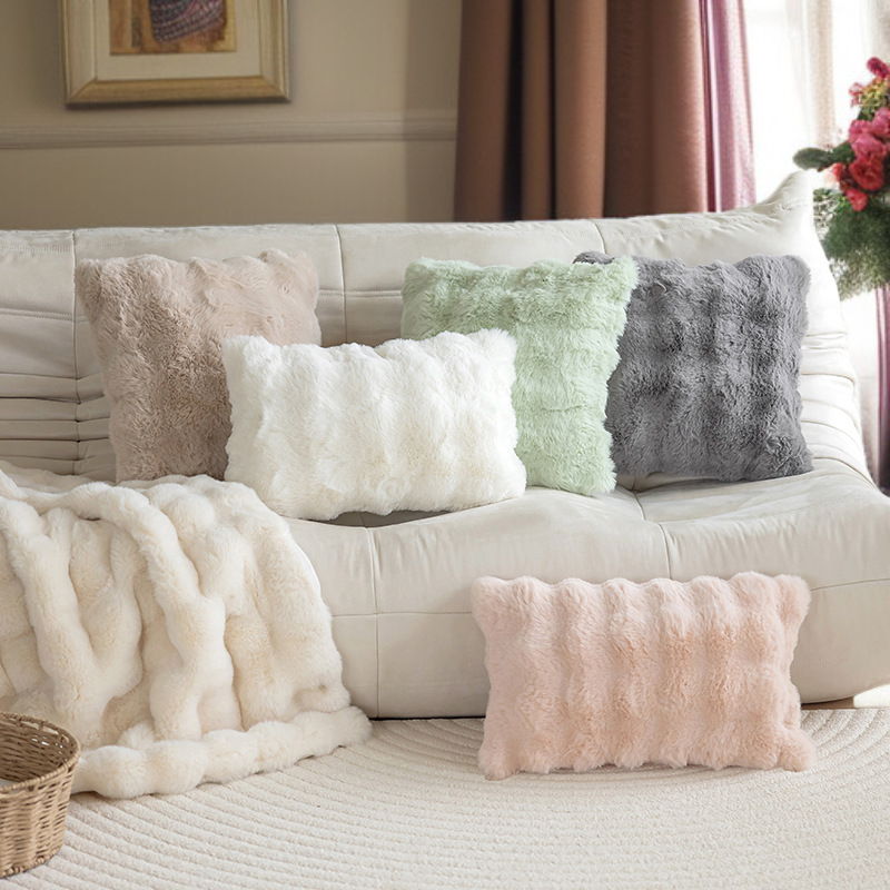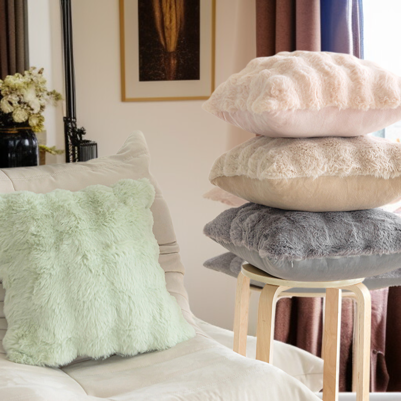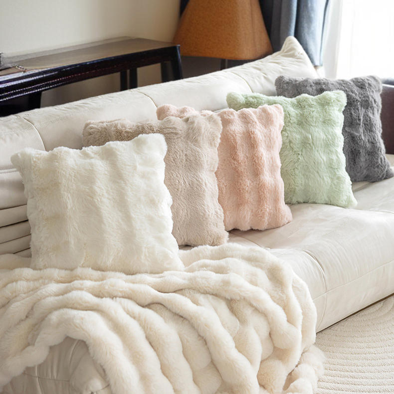Kissenbezug aus Kunstkaninchenfell, einfarbiges Plüschmaterial für Sofa und Wohnzimmer