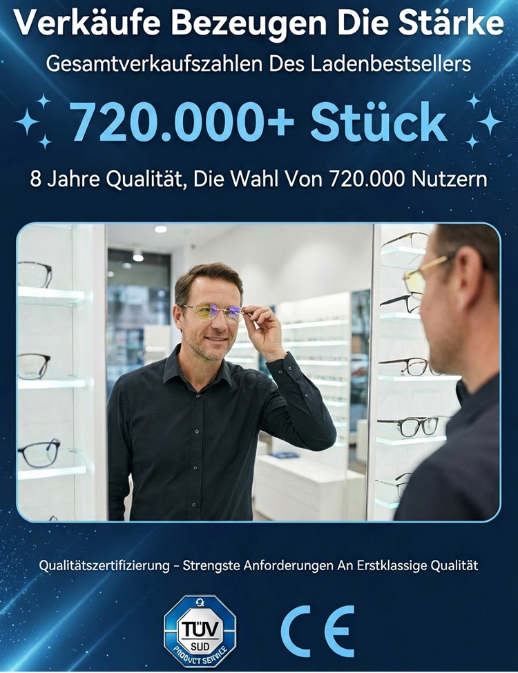✨Limitierte Chance: 3.000 Stück einer Fachmessen-Charge werden jetzt direkt an Endkunden abgegeben – zum halben Preis! Lebenslange Garantie auf die Titan-Fassung. Aber nur solange der Vorrat reicht. Klicken Sie unten, bevor sie weg ist!