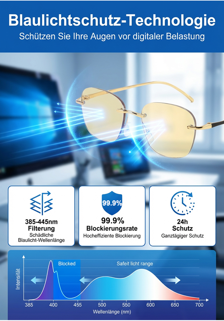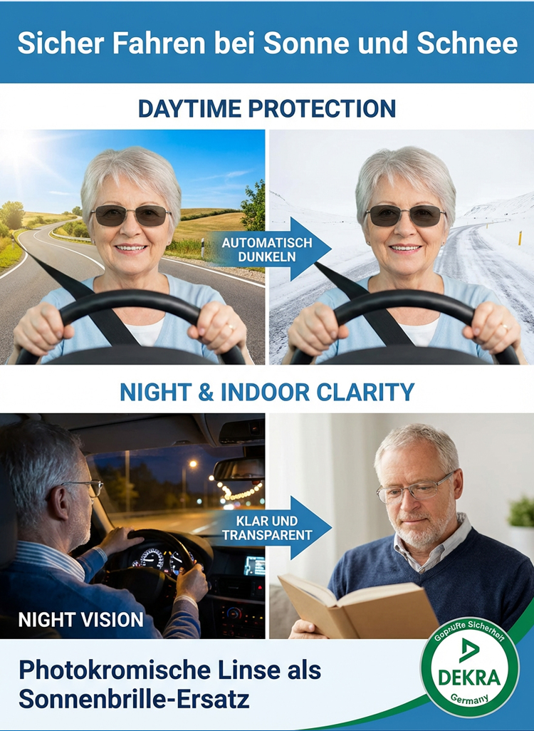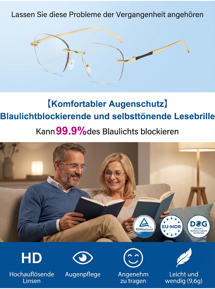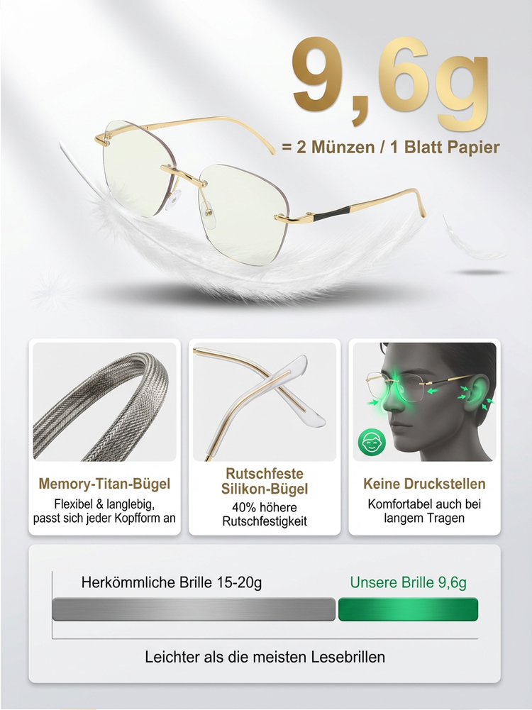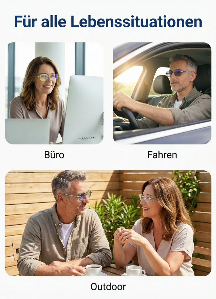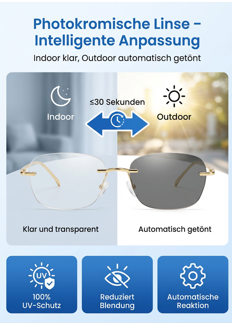 ✨Ein Meisterstück der Leichtigkeit: Nur 6 Gramm reines Flugzeug-Titan – so leicht, dass Sie vergessen, sie zu tragen. Trotzdem extrem robust nach Schweizer Präzision. Sitzt fest und stabil beim Joggen oder Wandern. Filtert 99,9% Blaulicht und wird im Freien automatisch zur Sonnenbrille.