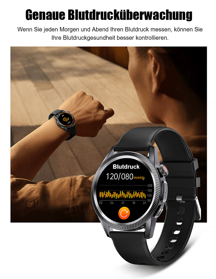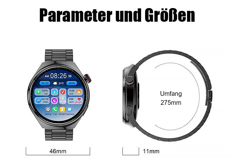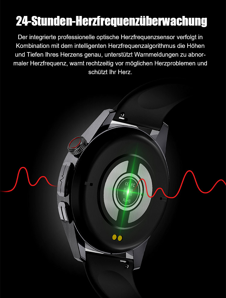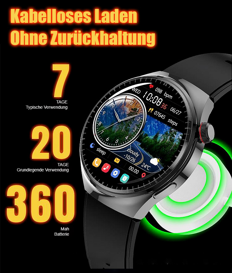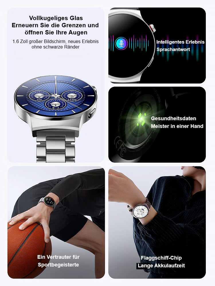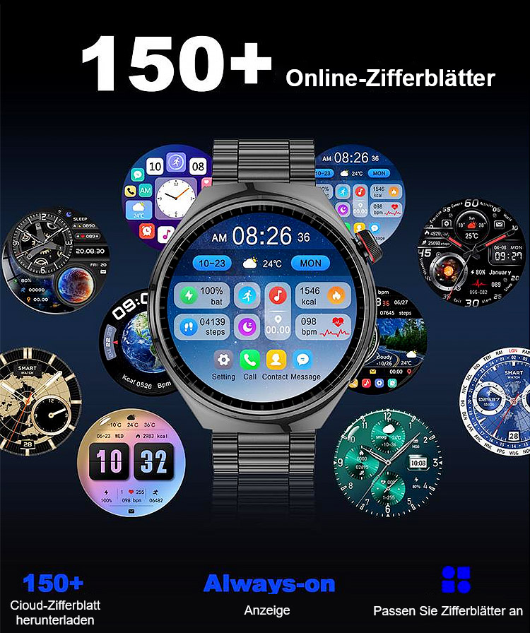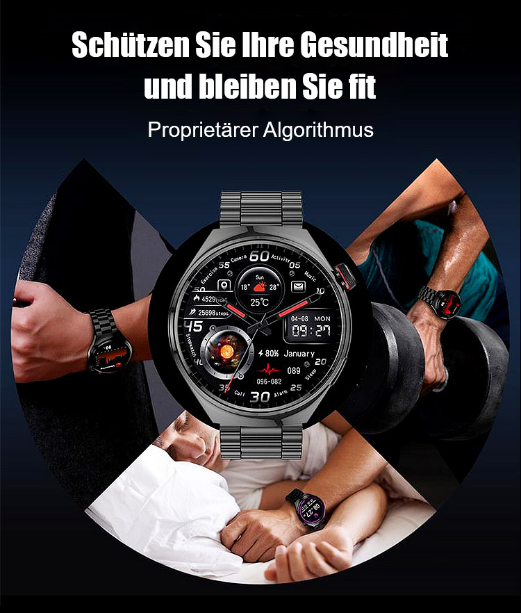 ⌚Ihr 24/7 Arzt am Handgelenk. SOS-Notrufe, 500+ Sportmodi, 50 m wasserdicht. Anrufe, SMS, Musik, KI-Tipps.
