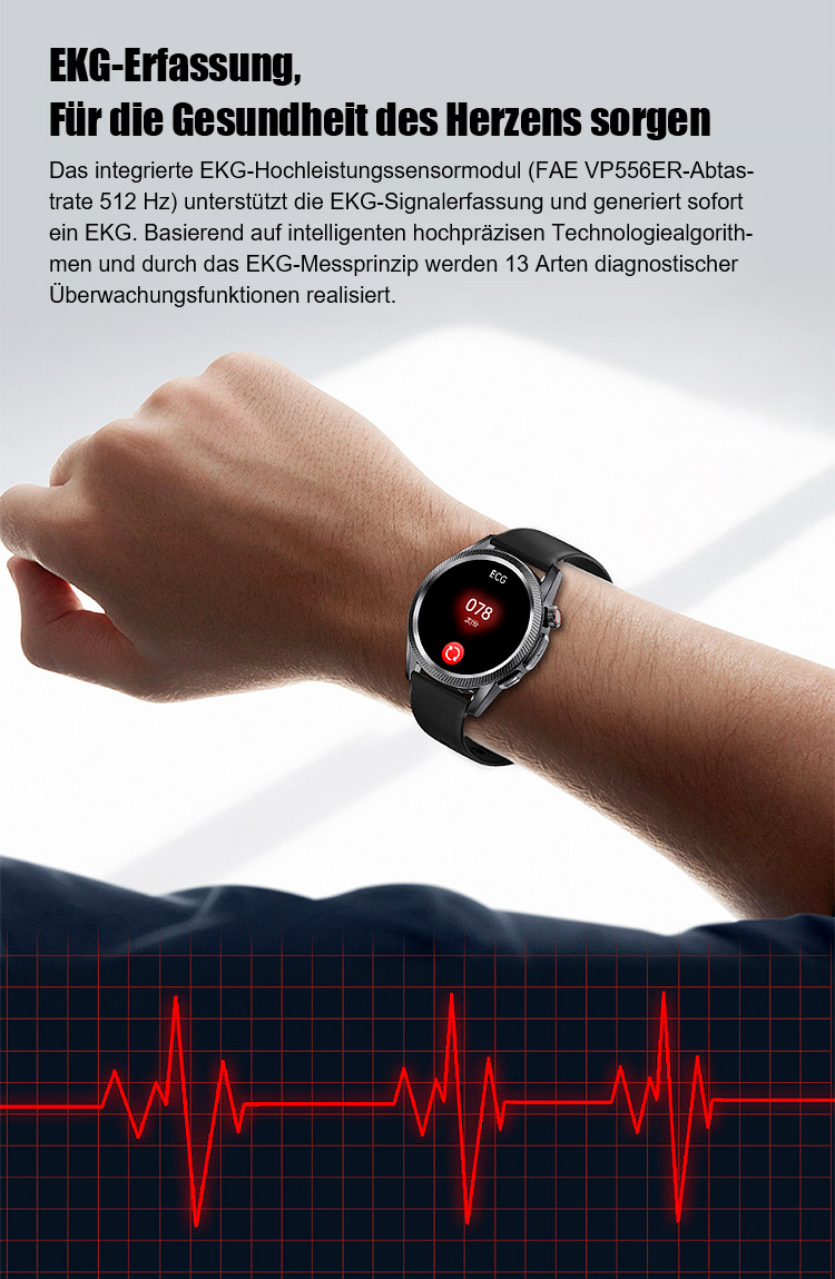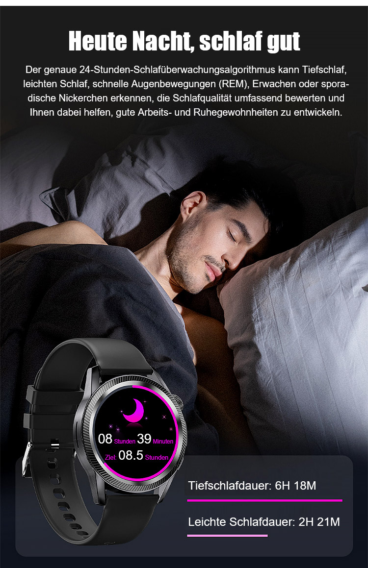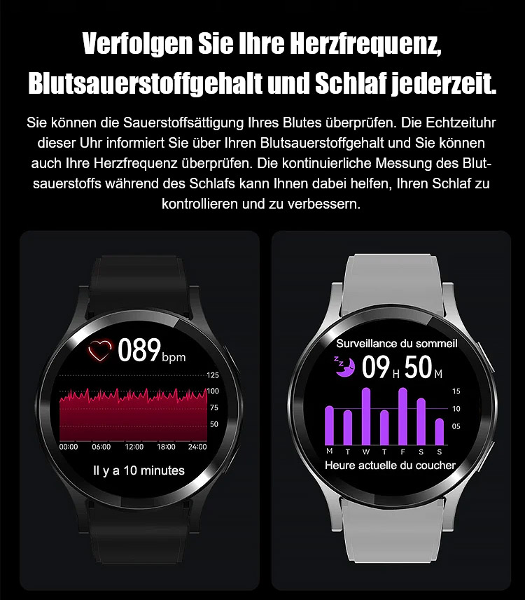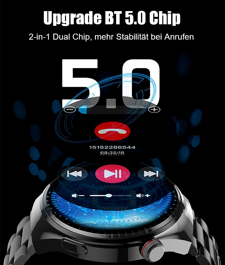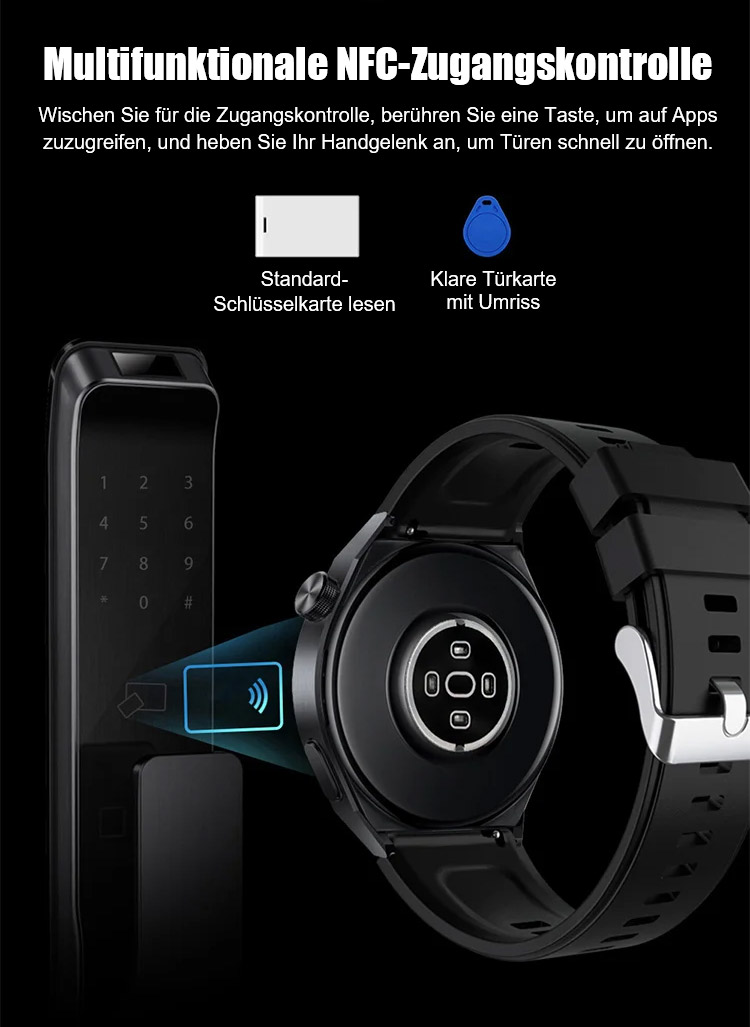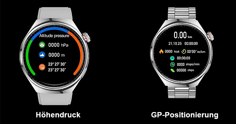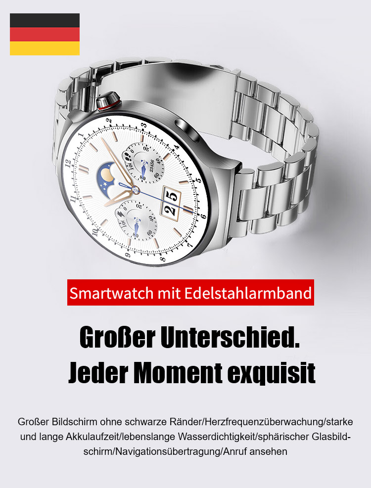 ⌚Ihr 24/7 Arzt am Handgelenk. SOS-Notrufe, 500+ Sportmodi, 50 m wasserdicht. Anrufe, SMS, Musik, KI-Tipps.